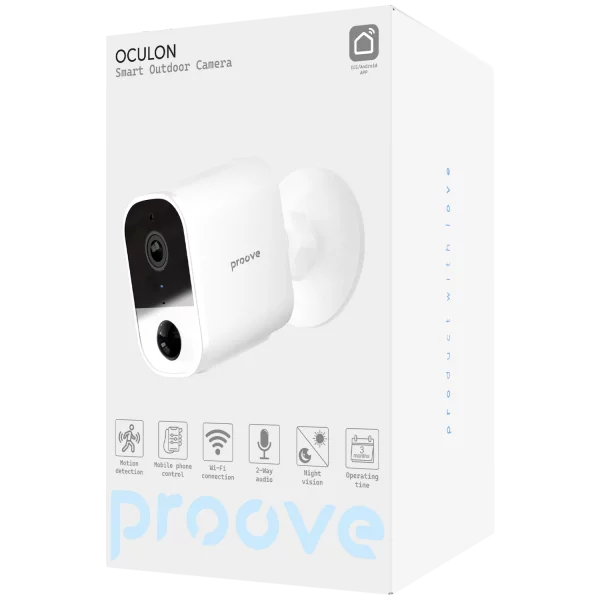 Proove Oculon е паметна надворешна безбедносна камера дизајнирана за долгорочен безжичен мониторинг , со фокус на безбедност, приватност и далечинско управување . Со резолуција од 3MP , моќна батерија од 5200mAh и двонасочно аудио , оваа камера нуди сигурна заштита за домовите и бизнисите.