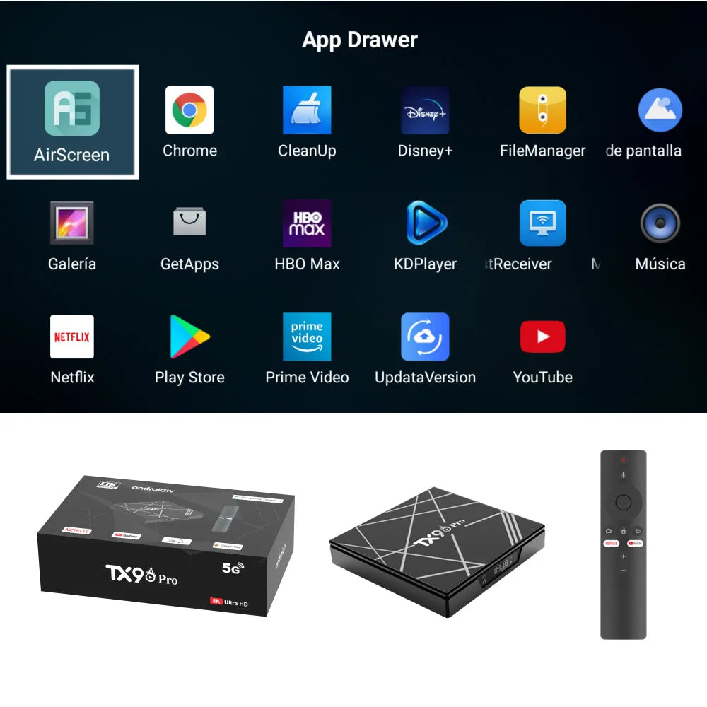 TX90 Pro është një Android TV Box i fuqishëm i gjeneratës së re, i ndërtuar për streaming UHD, përdorim të aplikacioneve Android dhe shndërrimin e çdo televizori në një Smart TV modern. Me 8GB RAM dhe 128GB memorie të brendshme, pajisja ofron hapësirë të bollshme, stabilitet dhe performancë të mirë për video, IPTV, YouTube, aplikacione dhe media lokale.