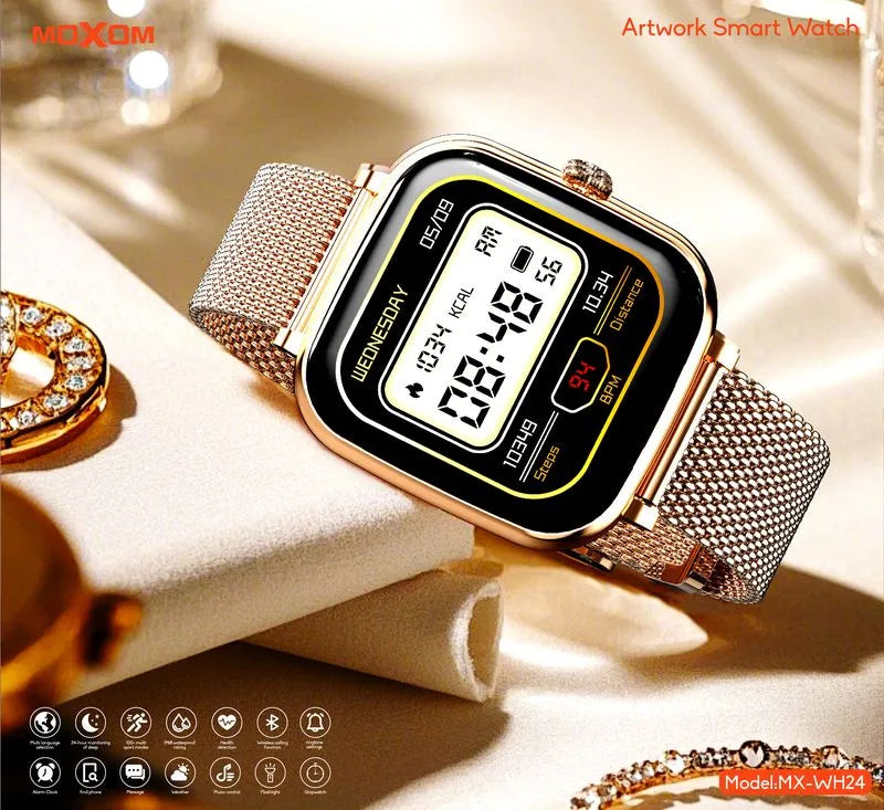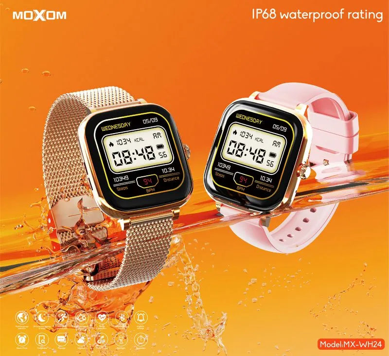 Moxom MX-WH24 është një orë inteligjente moderne me dizajn elegant dhe veçori të shumta shëndetësore dhe smart, e përshtatshme për përdorim të përditshëm, ushtrime dhe kontroll të telefonit.