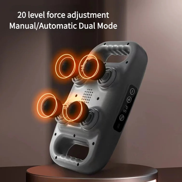 Masazhuesi perkusiv JY-0116-B me 4 koka është pajisje terapeutike për relaksim muskujsh dhe lehtësim të tensionit pas ushtrimeve fizike ose gjatë ditës. Me motor të fuqishëm dhe kokë të ndryshme për zonë të ndryshme të trupit, ofron masazh të thellë dhe të personalizuar për rehati dhe rikuperim. I përshtatshëm për përdorues aktivë, sportistë ose për përdorim në shtëpi.