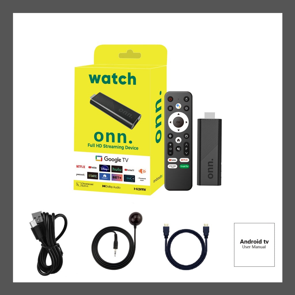 Onn Android TV Stick është pajisje streaming që e shndërron televizorin tuaj në një Smart TV me Android 14.0. Me 2GB RAM dhe 16GB hapësirë, ofron performancë të qëndrueshme për aplikacione streaming dhe multimedia. Falë Wi-Fi 5GHz dhe Chromecast të integruar, mund të transmetoni përmbajtje direkt nga telefoni ose tableti në televizor.