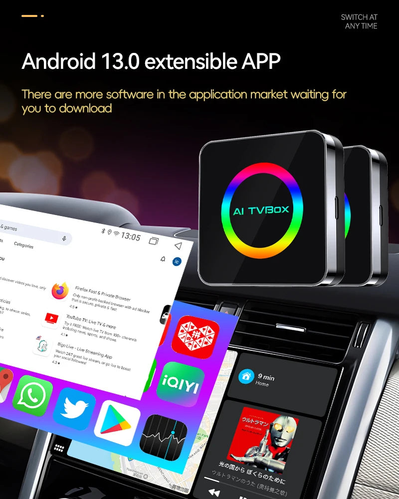 AI TV Box për veturë – Android 13, Wireless CarPlay & Android Auto