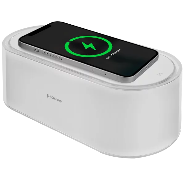 Proove Multicolor Glow është një llampë nate moderne “2 në 1”, që ofron ndriçim shumëngjyrësh ambienti (RGB) dhe karikim wireless të shpejtë deri në 15W për telefonin tuaj. Me kontroll me prekje, sensor ndriçimi, bateri të integruar dhe dizajn elegant minimalist, kjo llampë është ideale për tavolinën e natës, zyrë apo dhomë gjumi.
