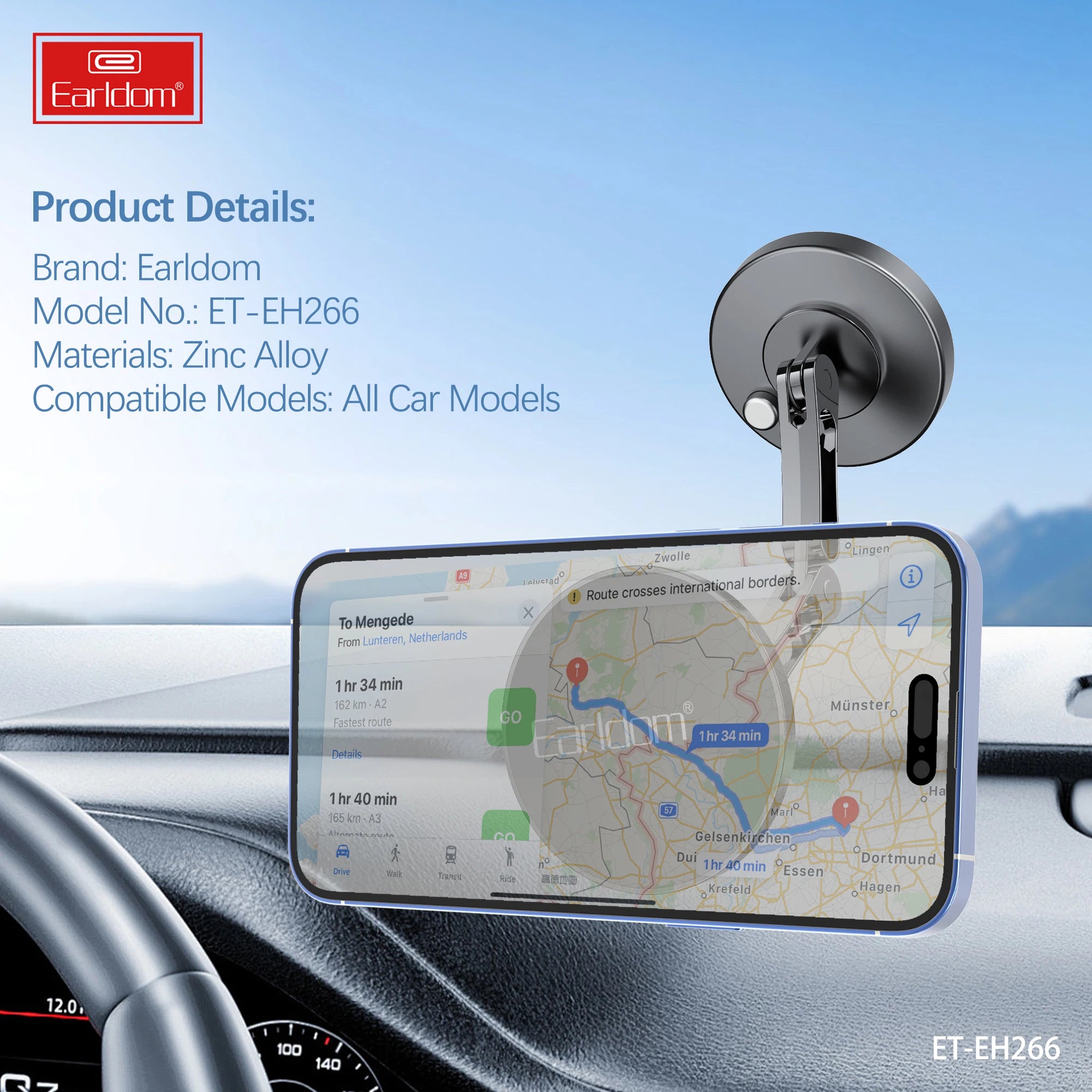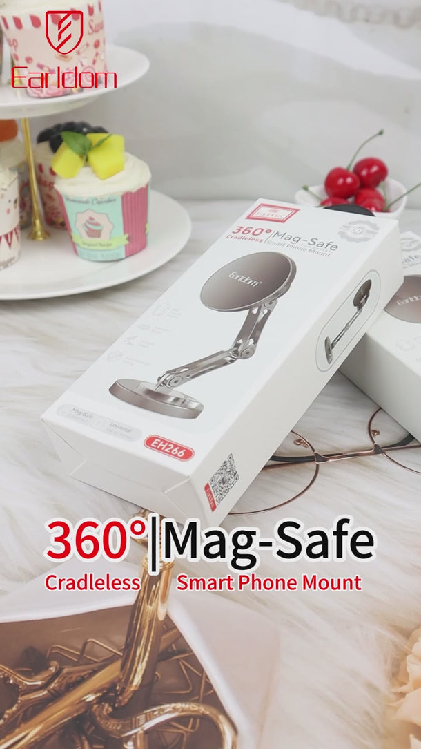 Mbajtësi celulari Earldom EH266 është një aksesor magnetik i dizajnuar për pajisje që mbështesin MagSafe, duke ofruar kapje të fortë dhe vendosje të shpejtë të telefonit pa kapëse tradicionale. Ky model është i përshtatshëm për përdorim në veturë ose në sipërfaqe të sheshta (sipas variantit), duke siguruar stabilitet gjatë përdorimit dhe lëvizjes.