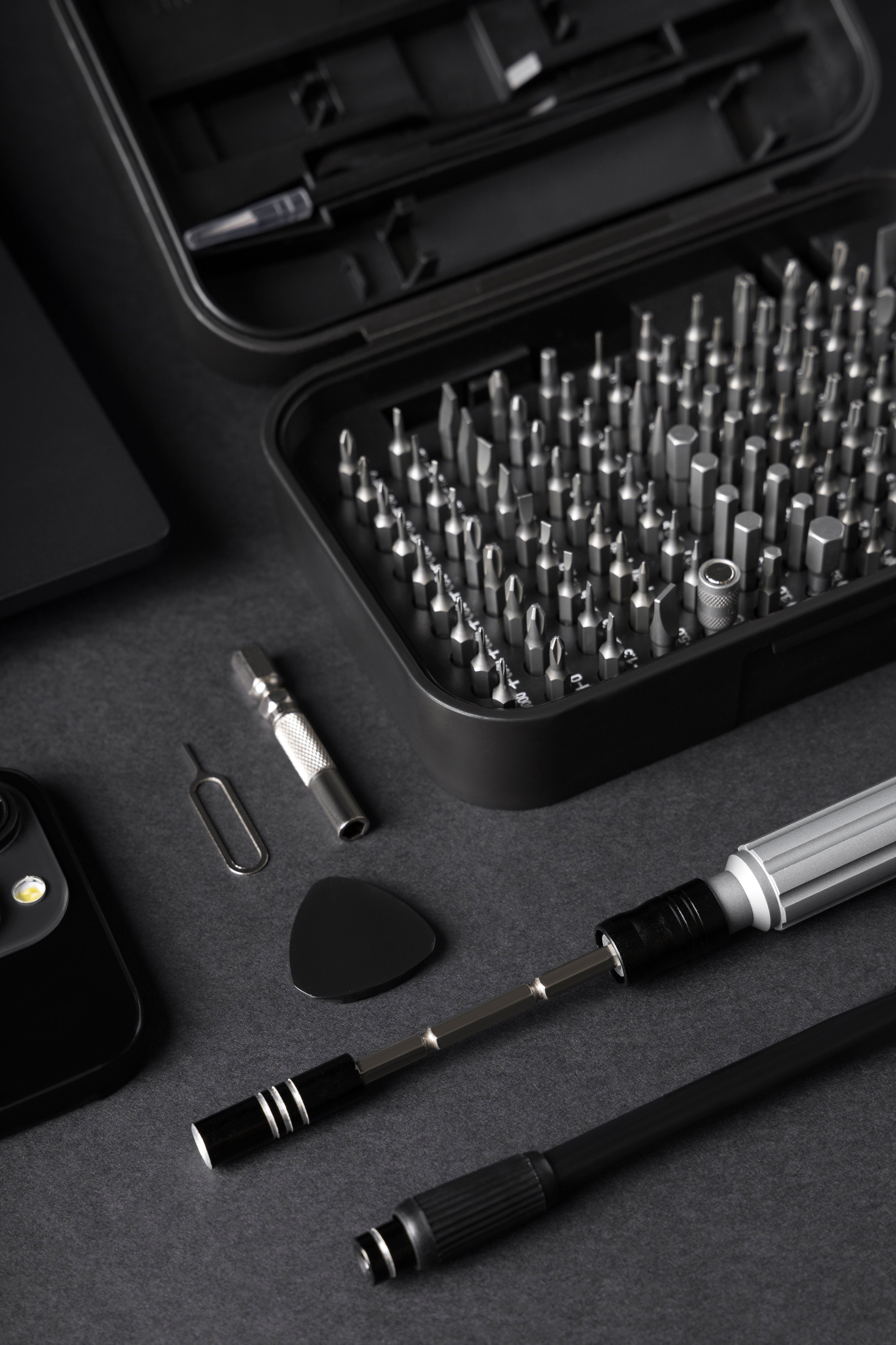 • Përfshin kaçavidë me bite të ndërrueshme, pinca, thithëse (suction cup), gjilpërë për SIM dhe aksesorë të tjerë
